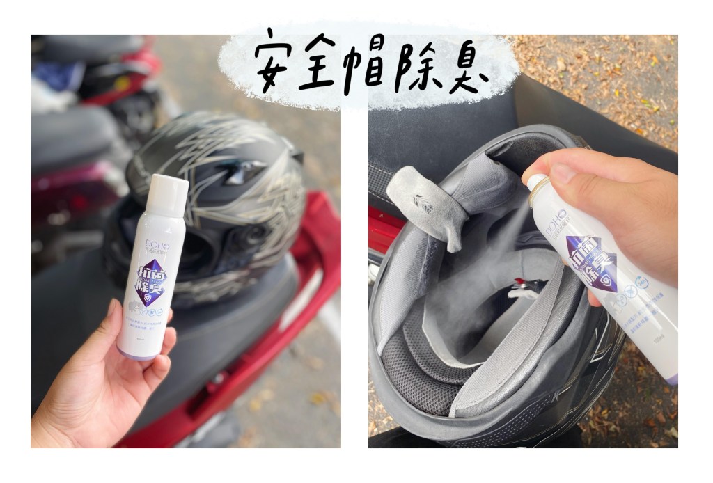 夏天全罩安全帽的內襯會因為流汗悶熱而散發臭味,這時候噴上DOHO除臭噴霧就不用怕剛洗好的頭又臭了!真的是拯救了機車族!