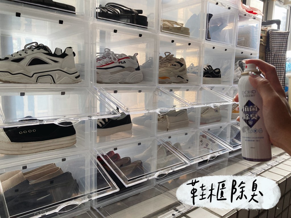 最近剛好家裡在重新規劃鞋櫃,我們打算在陽台擺放新鞋櫃。但是陽台還要曬衣服,若是鞋櫃或鞋子有臭味真的是母湯啊!!所以我們還嘗試了DOHO嘟后的除臭噴霧😍