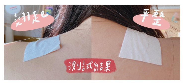 實測結果起床後發現左邊的貼布四周已經微微翹起來,而右邊有噴好朋友噴霧的貼布貼合皮膚的效果好很多!