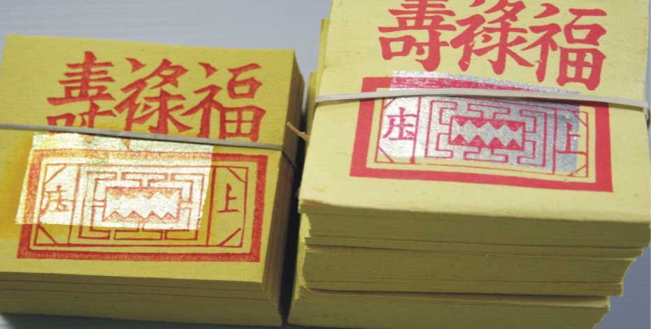 紙錢的價值是由上面那張錫箔的大小來決定的,所以錫箔愈大張紙錢的幣值越高喔!