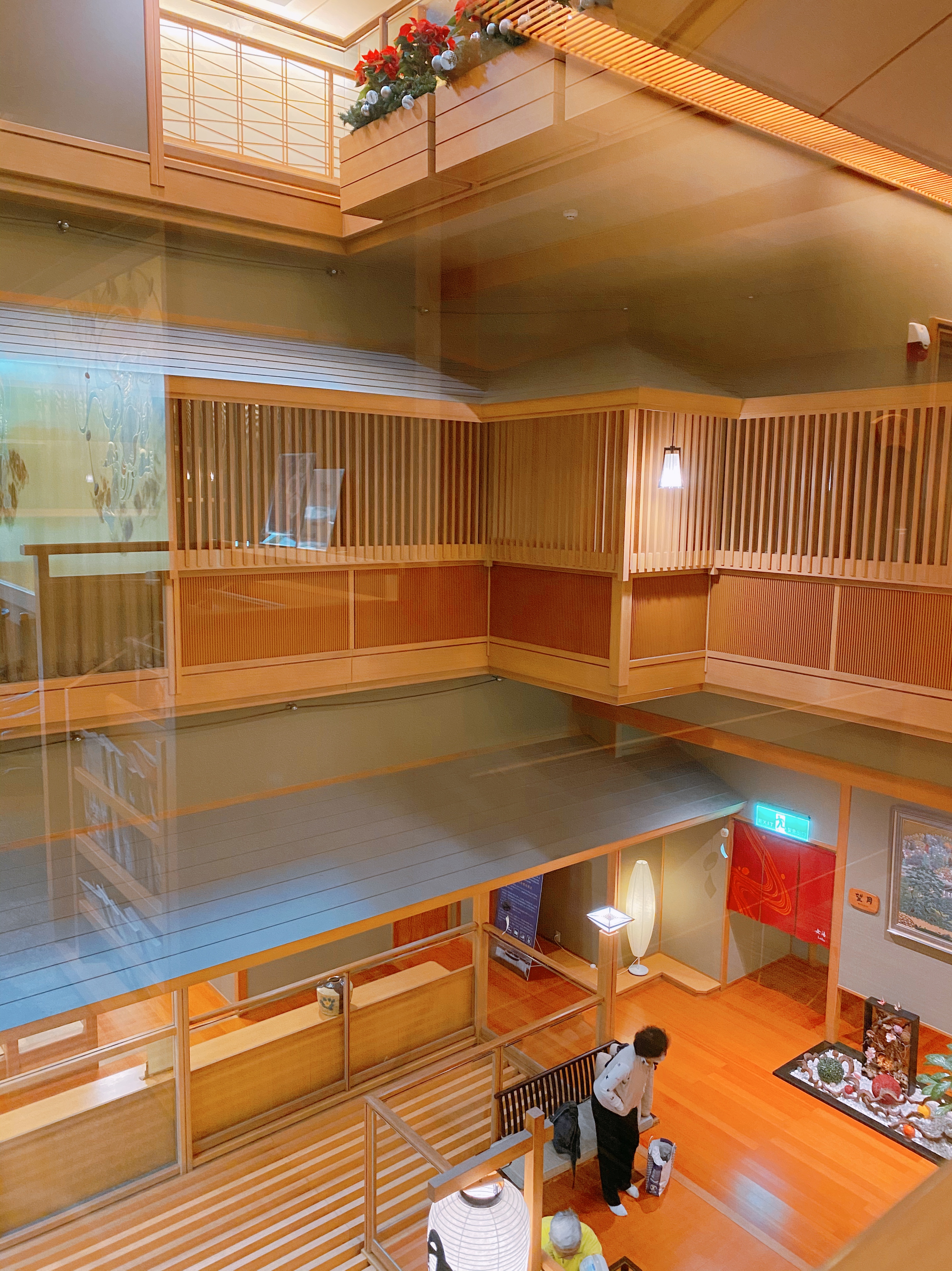 乍看之下超級像神隱少女裡面的湯婆婆的湯屋,但是更精緻漂亮,而且一下車門口就有穿著和服的漂亮姊姊迎接,親自把送我們到電梯裡,感覺賓至如歸吶!
