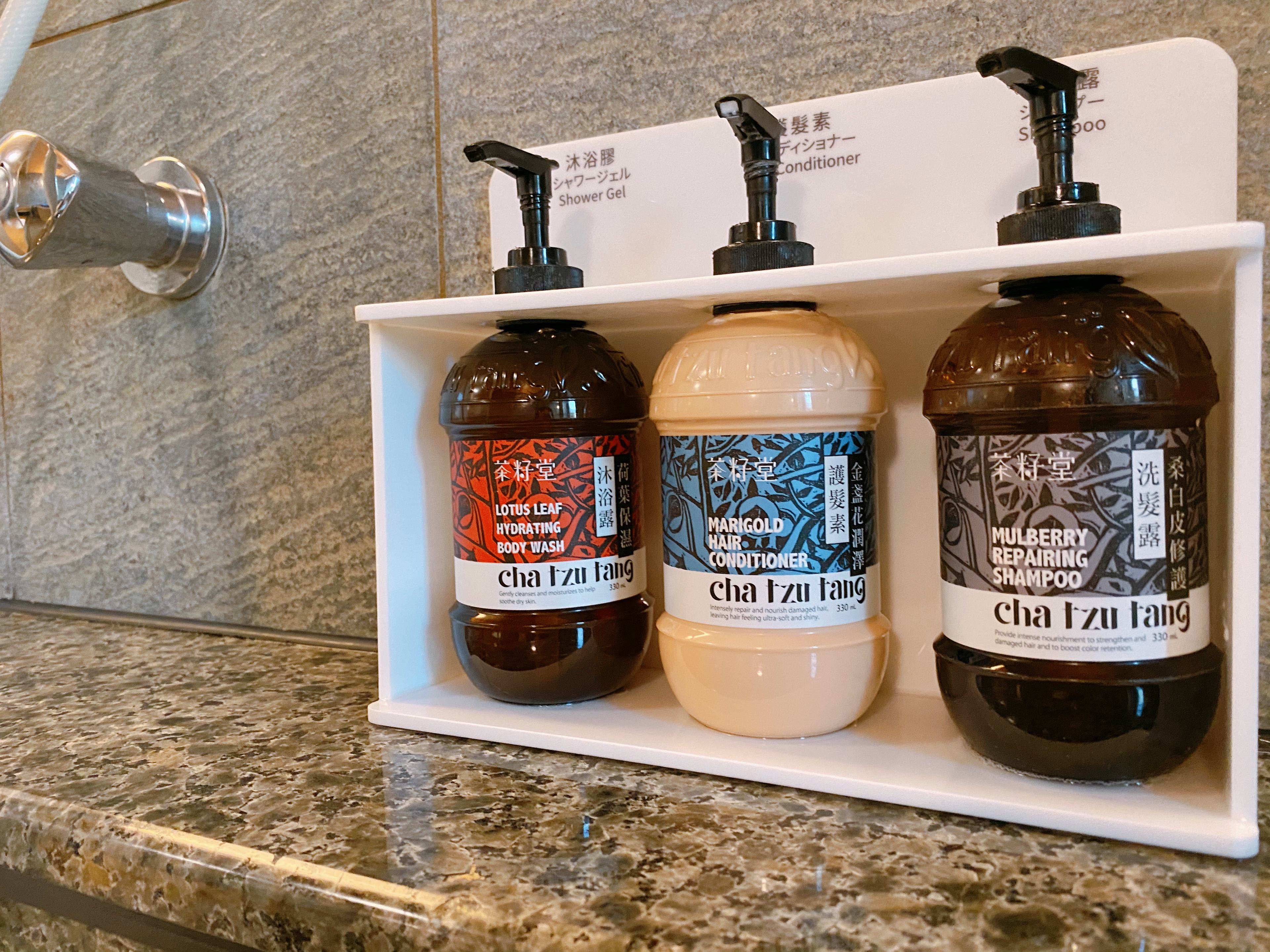 加賀屋提供的洗髮精潤髮乳跟沐浴乳是用茶籽堂的味道很舒服,