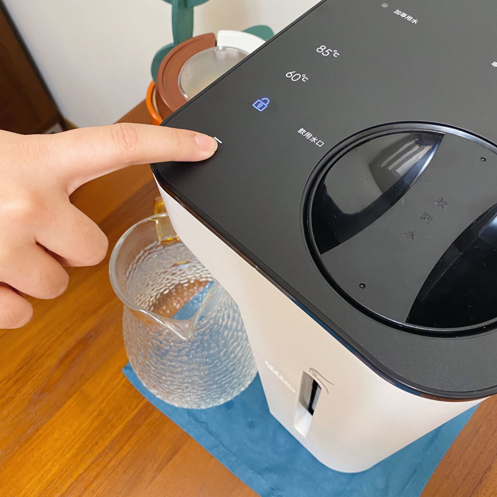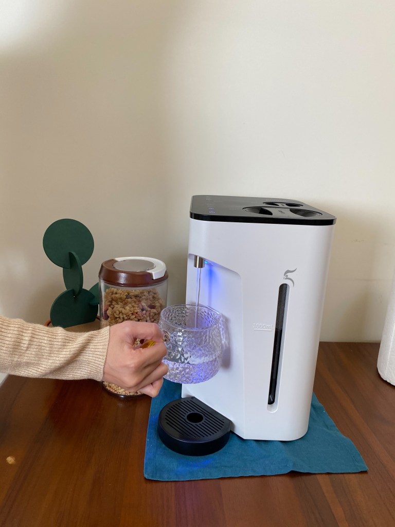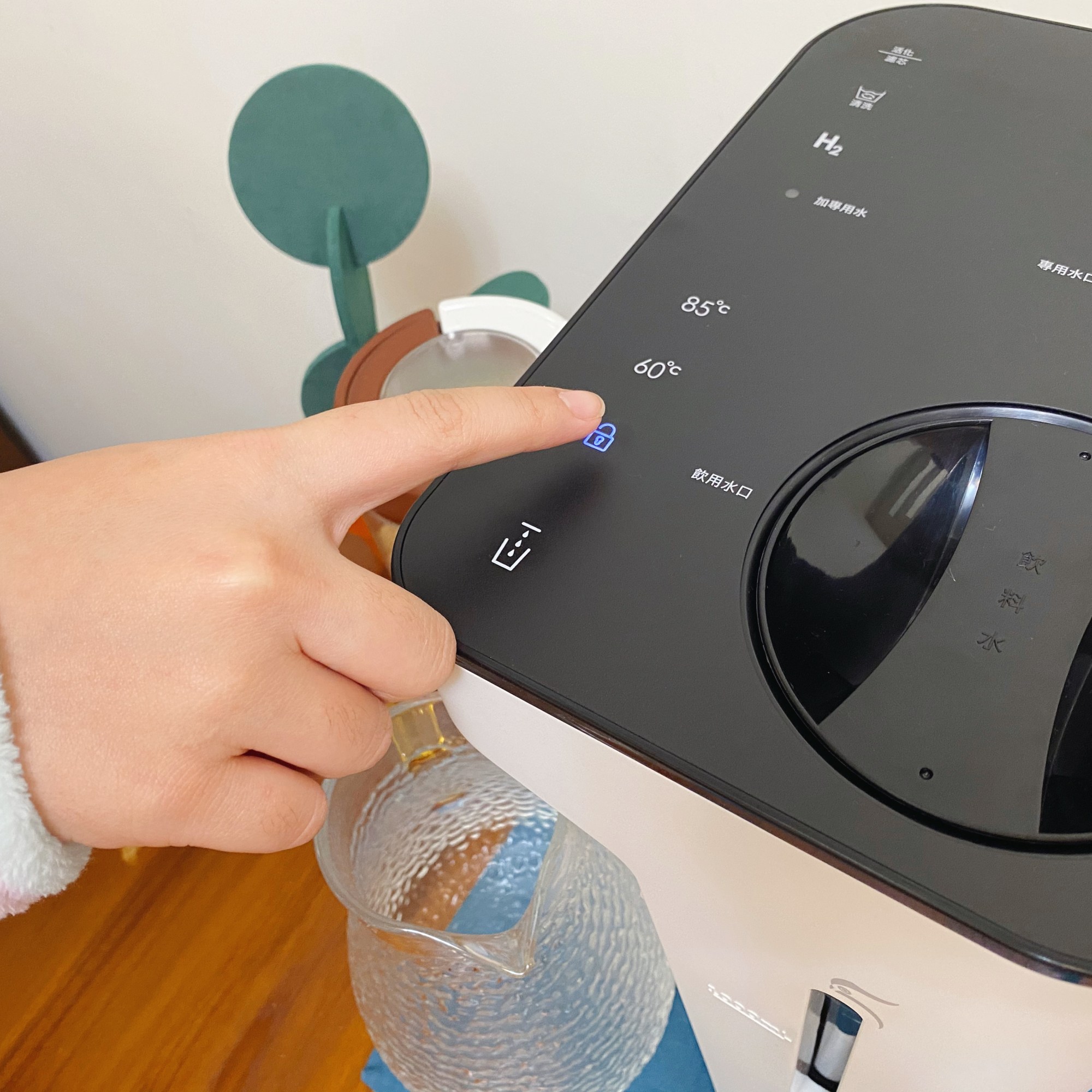 而出溫熱水素水時,除了解鎖外,更需長按著出水鍵,才能持續出水,手離開之後熱水就會停了!