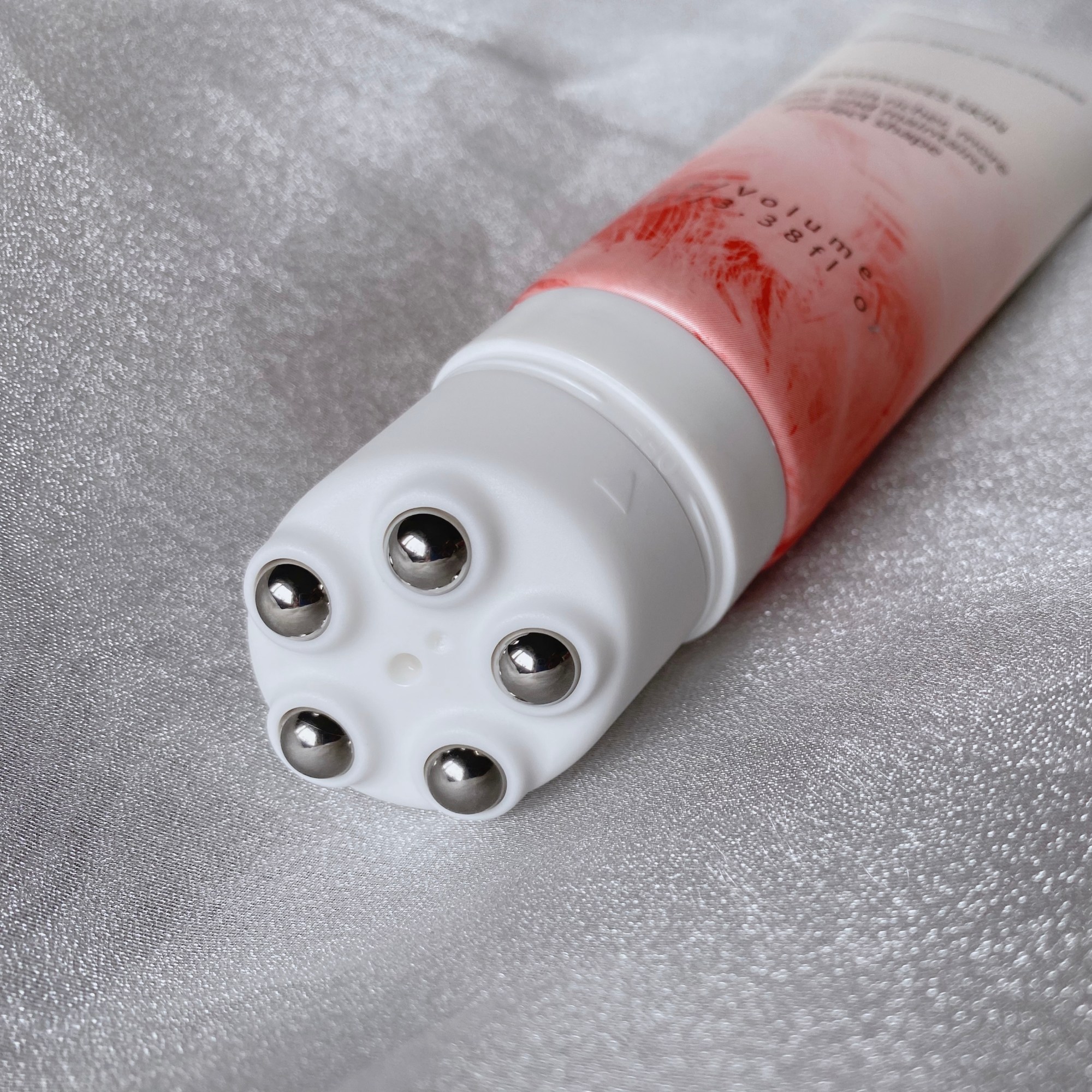 美巨霜是滾珠式的按摩棒設計,瓶身一端就是滾珠,乳液可以很輕鬆的從滾珠中間的孔洞擠出來,