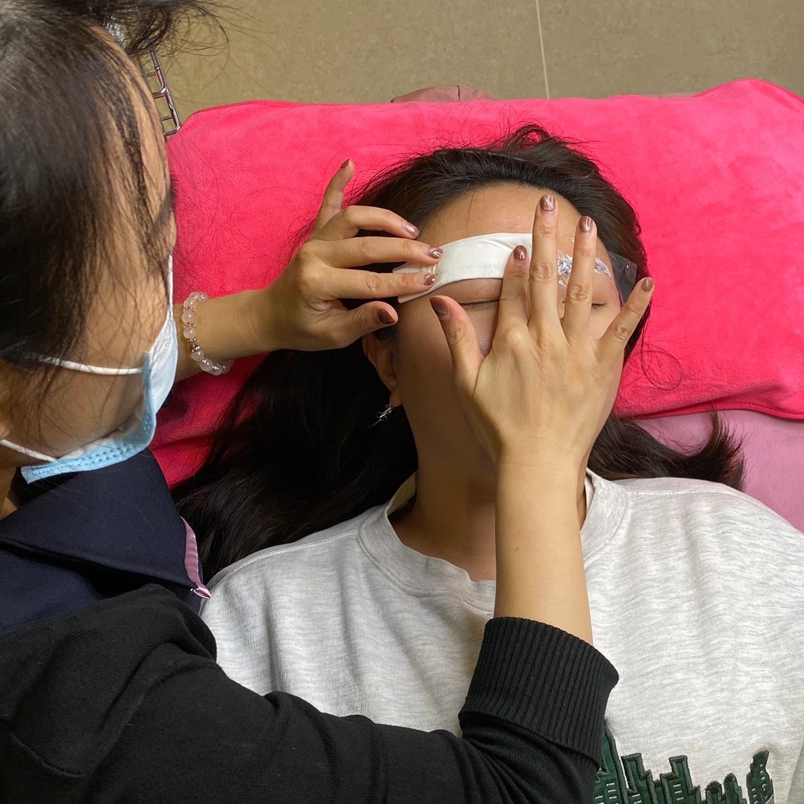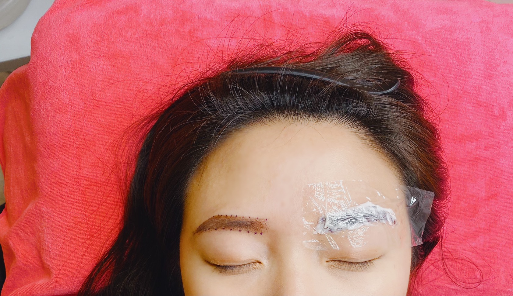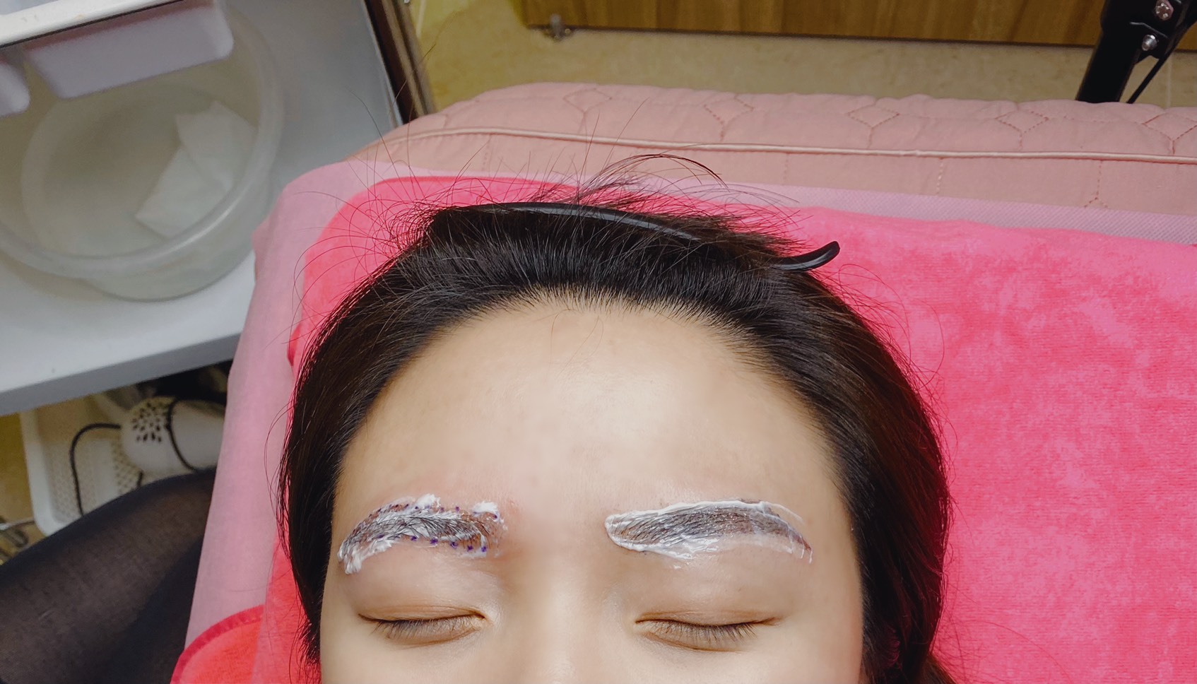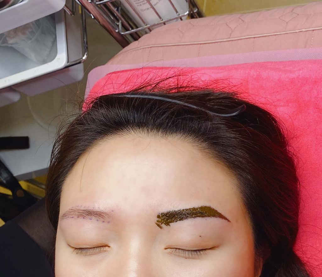 接著會先幫一邊的眉毛敷麻藥,大概要等30分鐘之後才會開始,而另一邊的眉毛在開始霧眉之後才會敷麻藥。