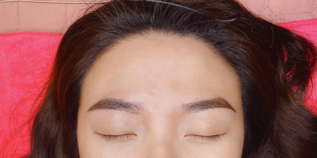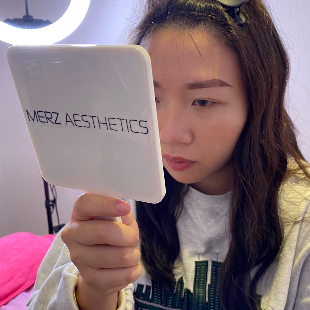 兩邊眉毛都用好之後老師讓LU編坐起來再進行微調,因為前面有說到坐著跟躺著看起來會不太一樣,微調後老師會給一個藥膏並且說明後續的保養和藥膏的使用方法。