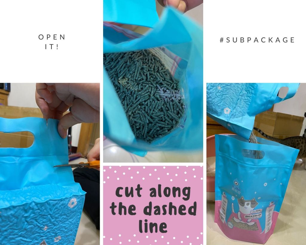 打開外包裝裡面還有附上一個保存用的夾鏈袋,原本密封的貓砂打開之後還可以用保存袋收起來,就不用怕濕氣影響到貓砂的使用效果啦~