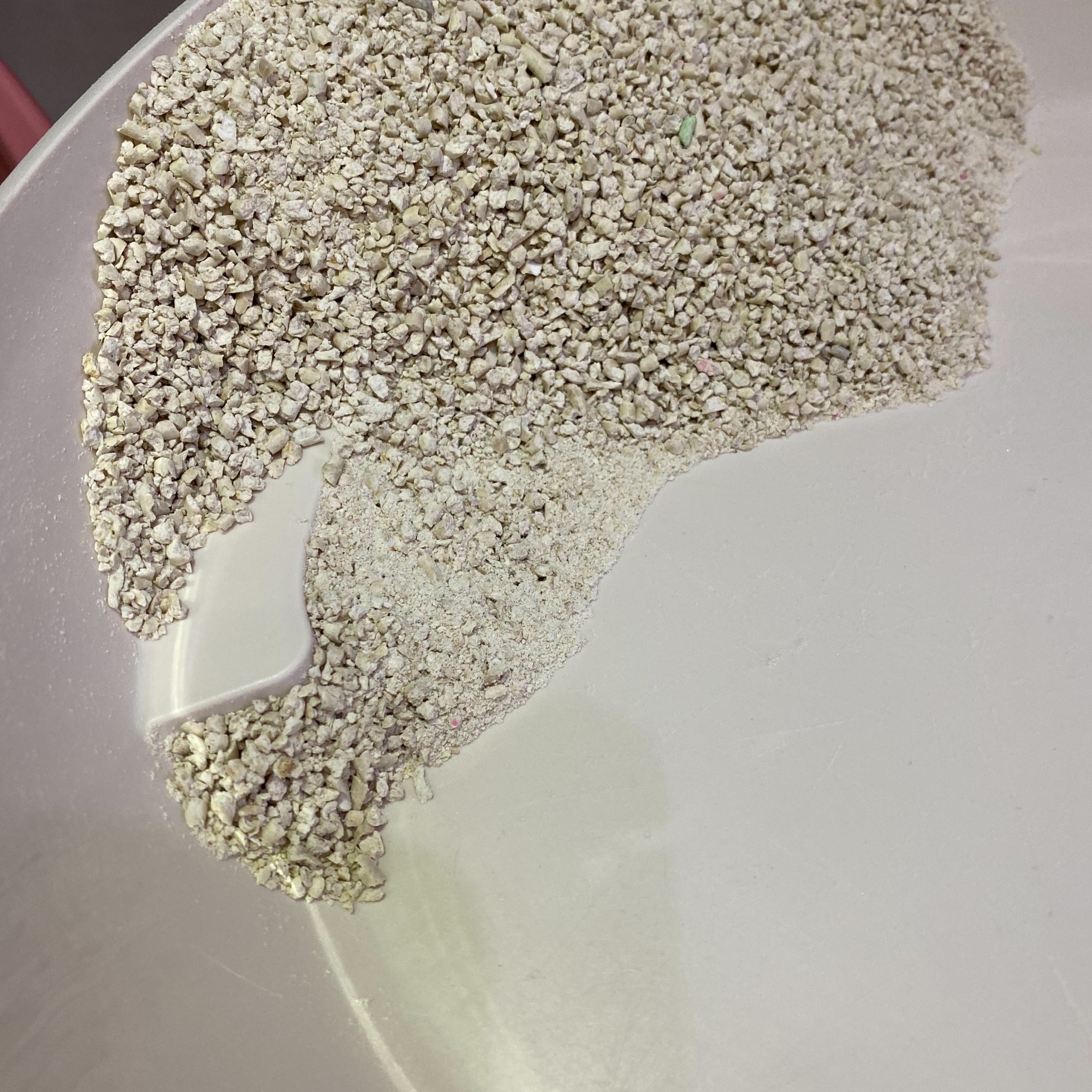 因為家裡是老舊公寓所以使用他牌貓砂時除了分次倒以外,等待貓砂在馬桶水裡面都溶解完真的需要蠻長一段時間的