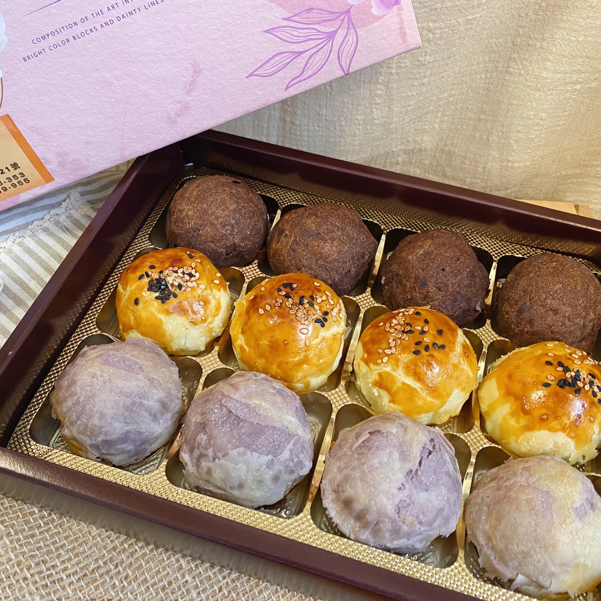 👉🏻蛋黃酥、芋頭酥、巧克力紅豆麻糬、蒟蒻鳳梨酥,4種口味任意搭配