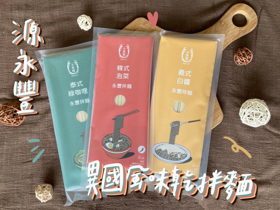 進入我們的主角-異國風味乾拌麵,一共有3種口味,韓式泡菜、泰式綠咖哩、義式白醬,其實源永豐之前也有出過拉麵口味的湯麵系列,有興趣的可以上官網看看。