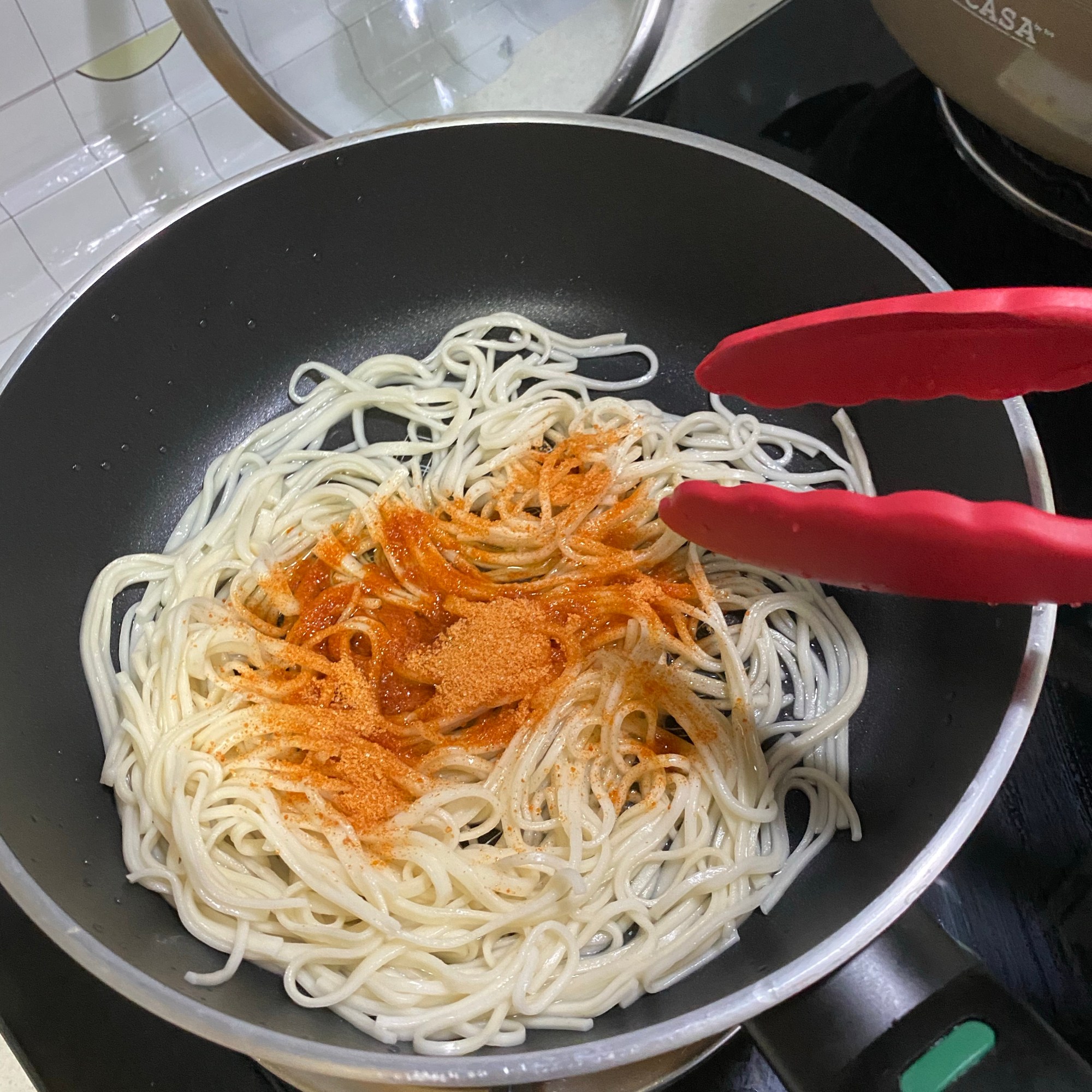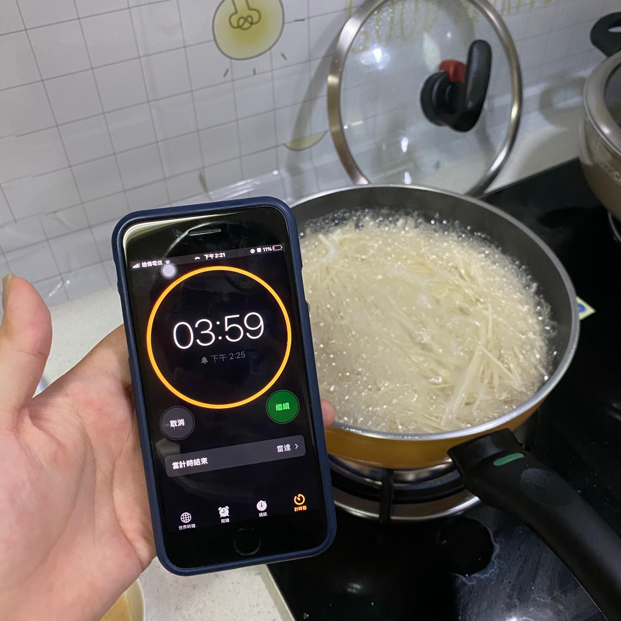 適量的水煮滾了之後,散狀的加入麵條,計時5-7分鐘,就可以撈起來囉!