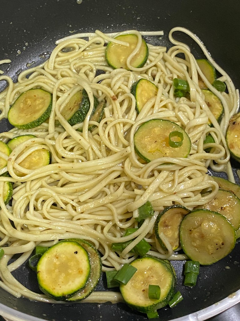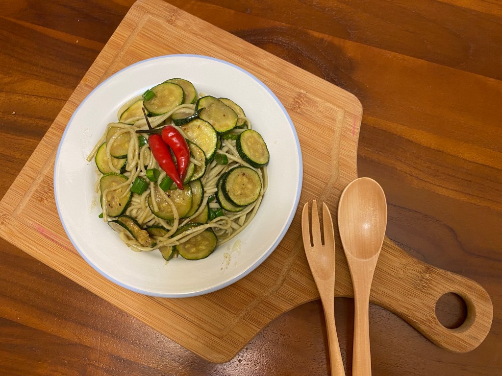 麵跟醬都混均勻之後再加入節瓜拌炒,轉眼間就又完成一個口味了~噹✨噹✨噹✨噹✨上菜囉!
