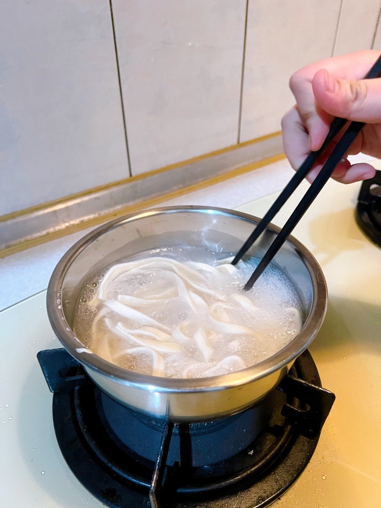 2. 將麵撈起備用(若喜歡很Q的可以麵撈出後可放置冰水中唷!)