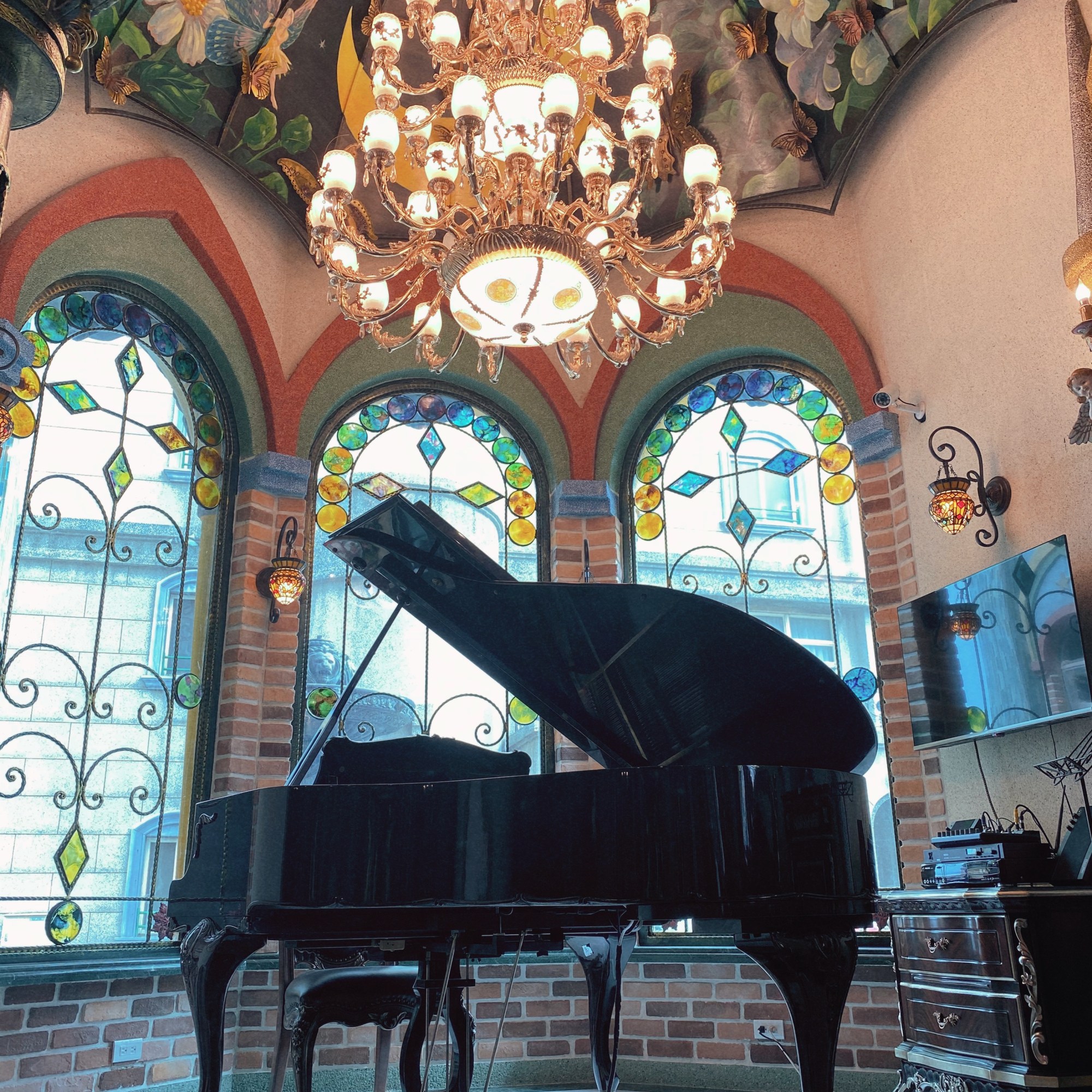 以及進門右手邊,傳來潺潺音樂聲的黑色鋼琴,
