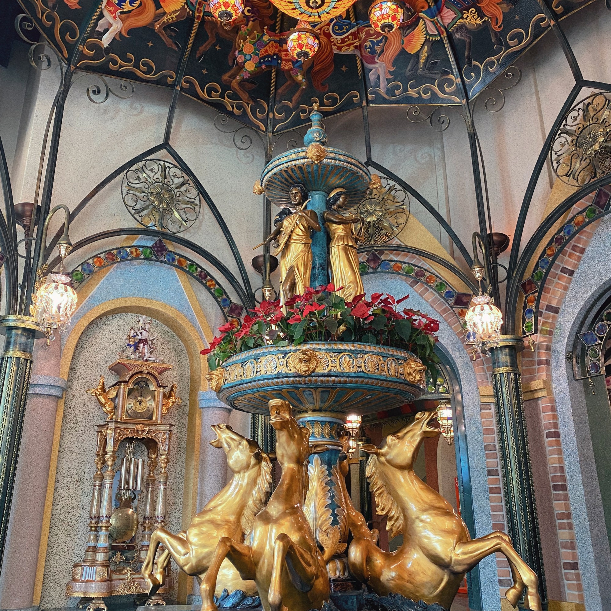 映入眼簾的就是有著馬匹點綴的噴水池裝飾,