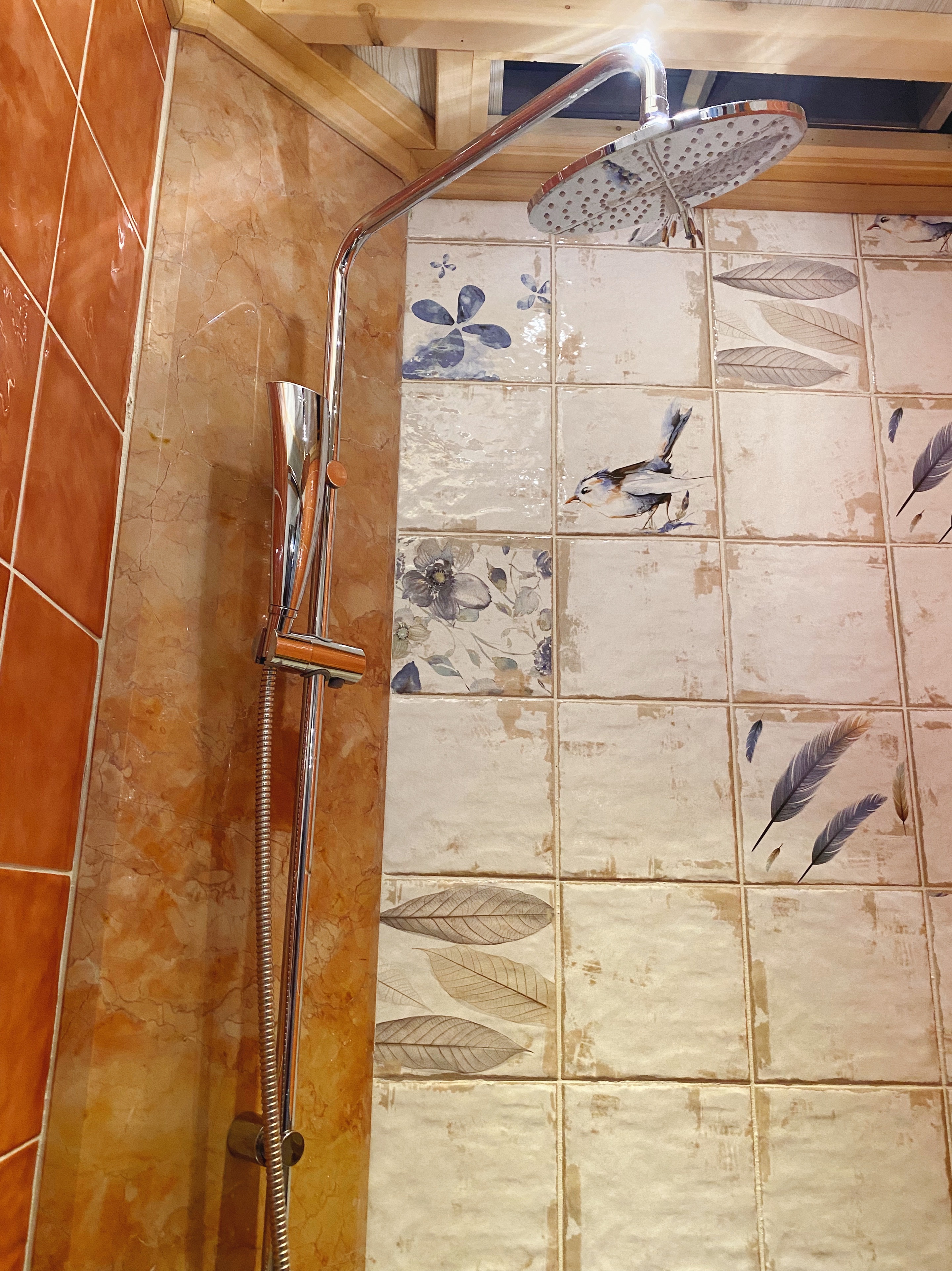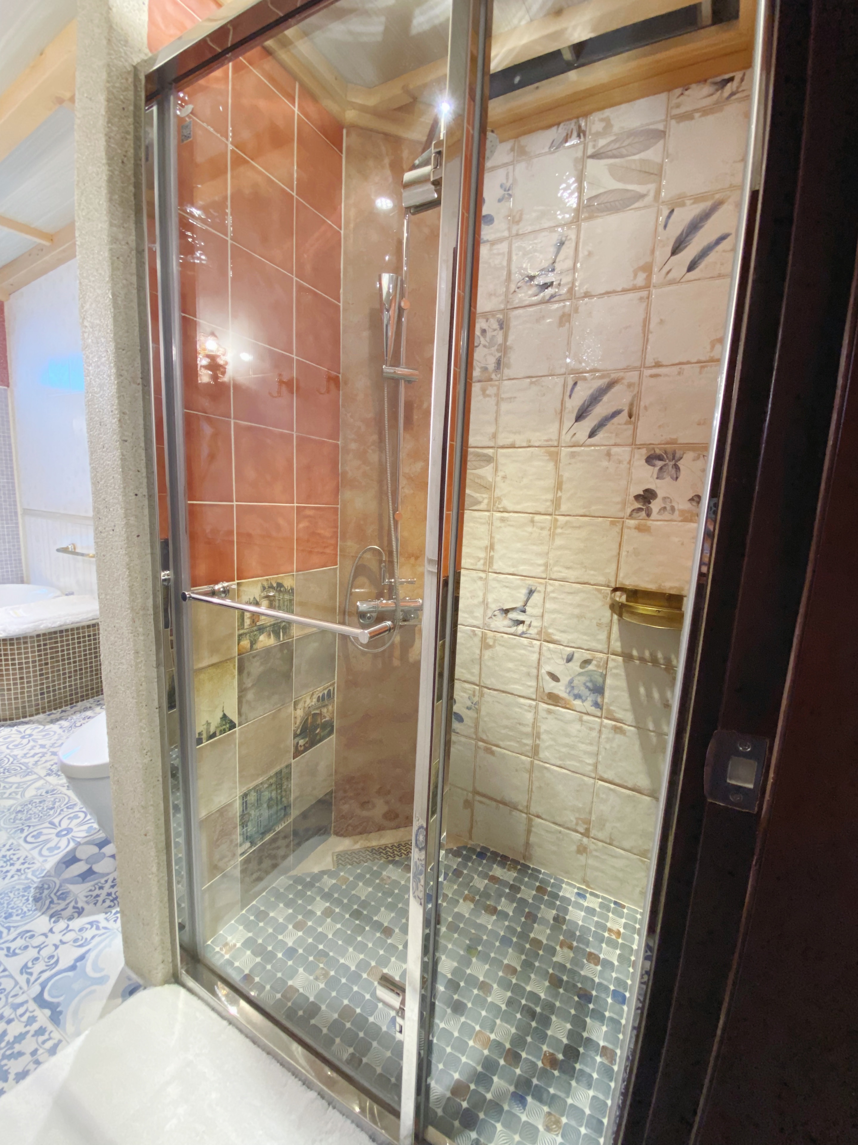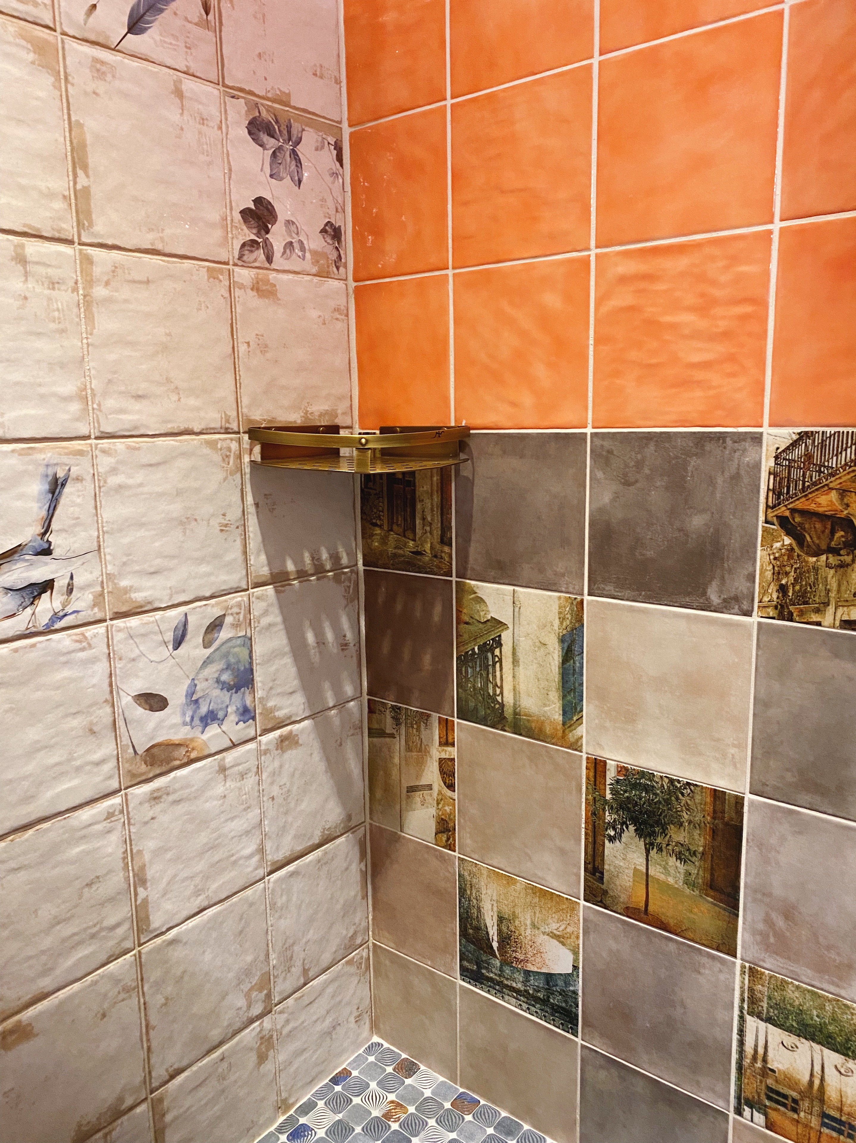 浴室內的磁磚花色每一塊都各有特色,全部結合起來卻一點不違和!
