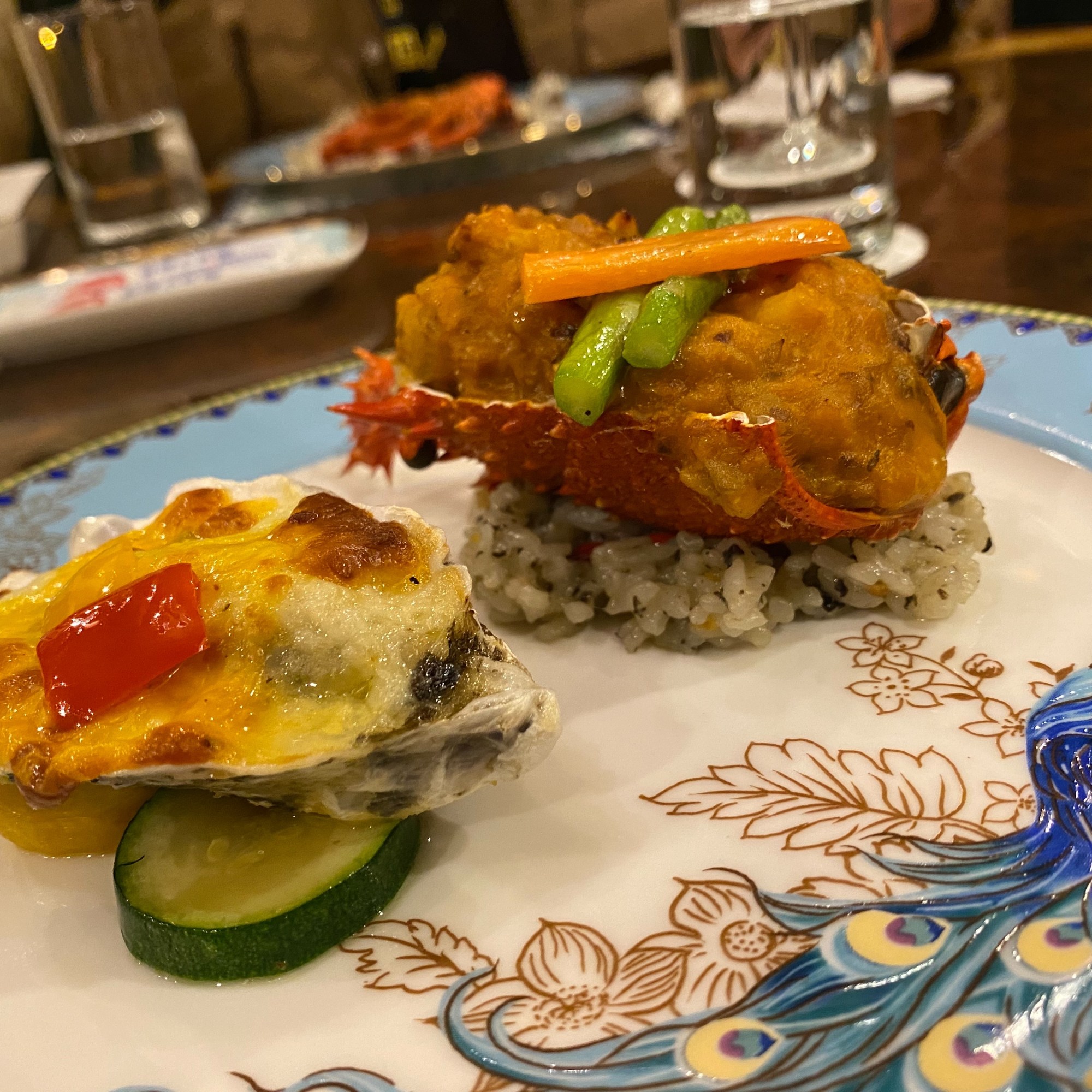 另外在淡淡威士忌香氣的馬賽龍蝦下面,