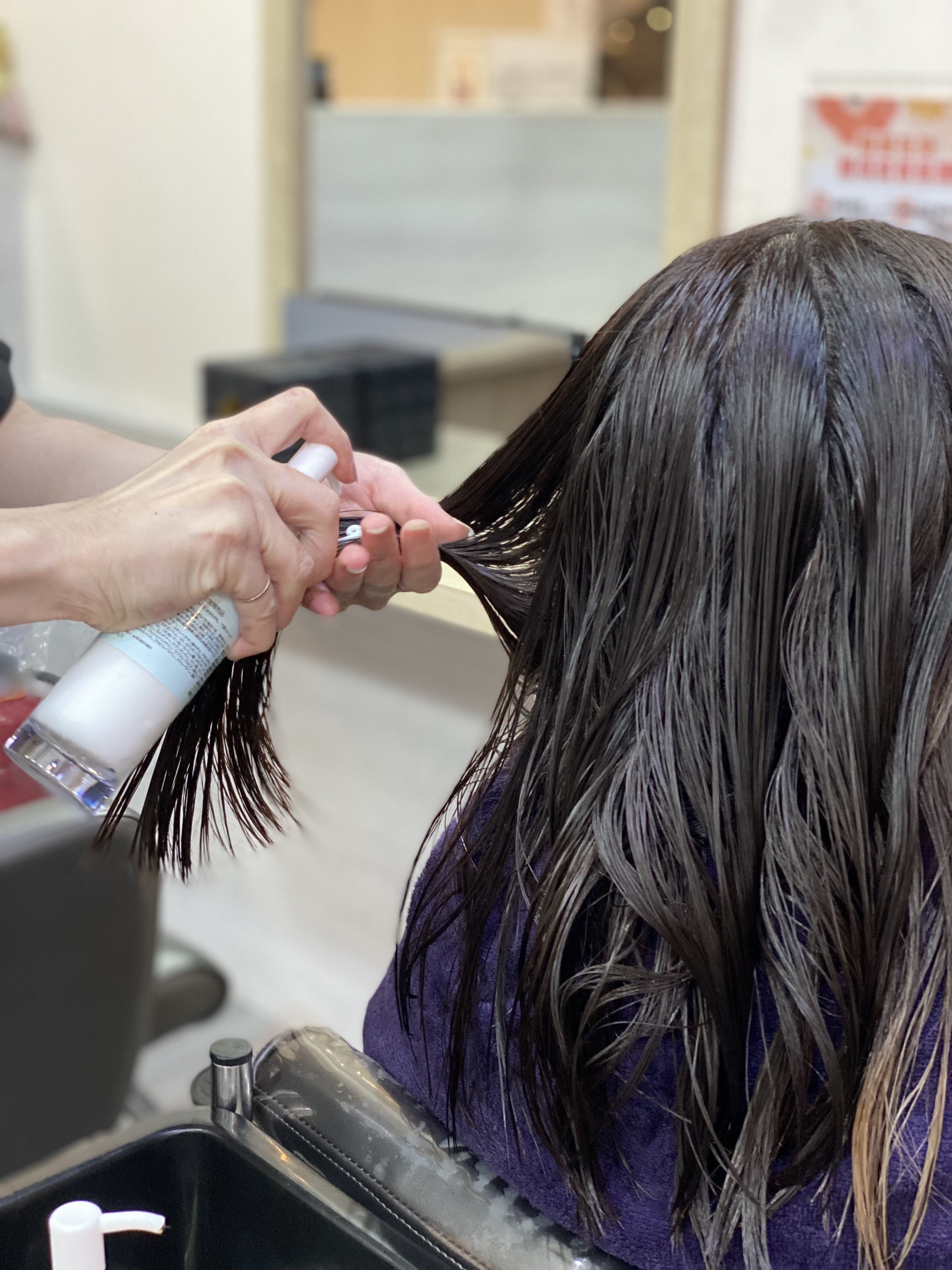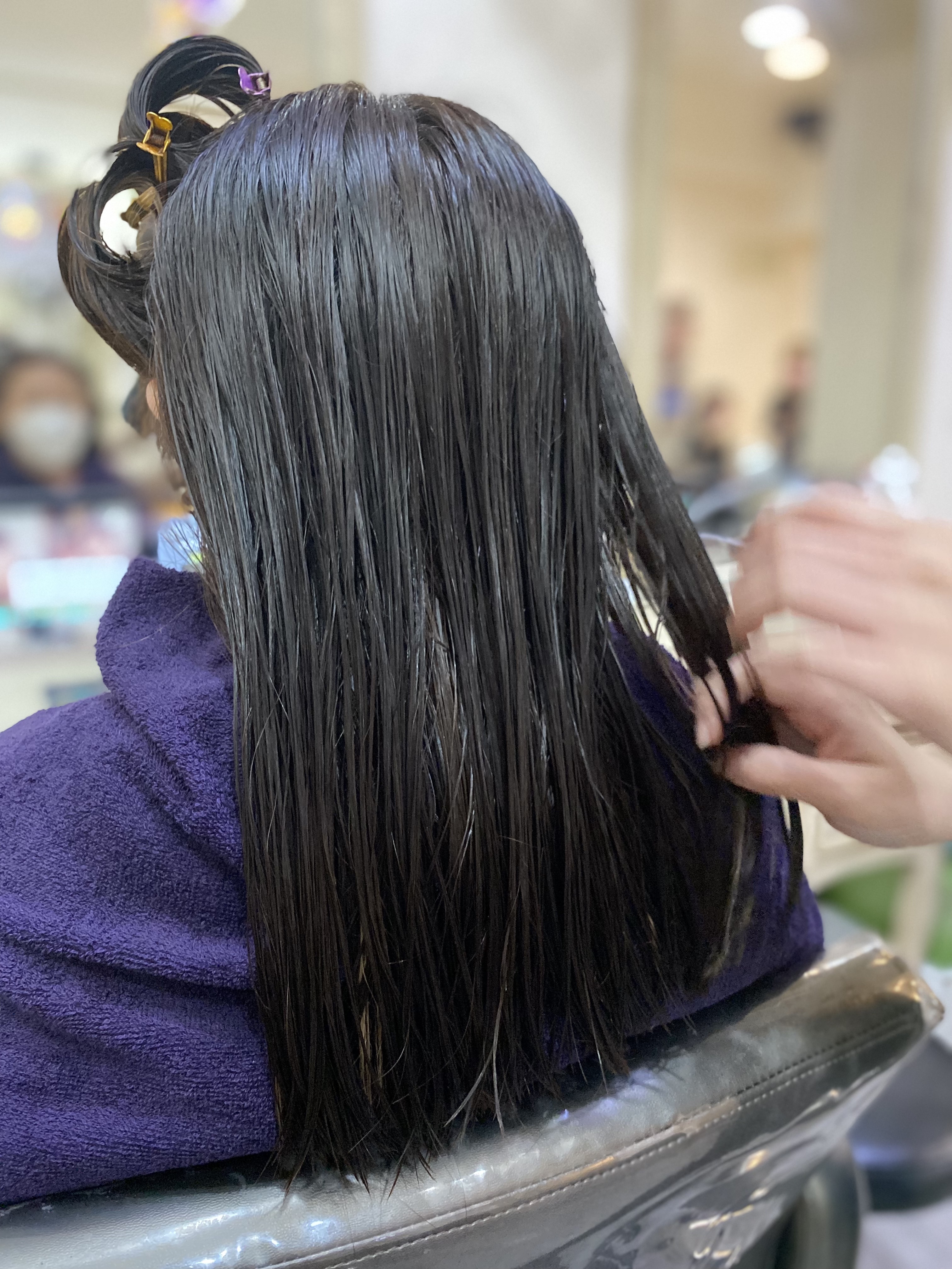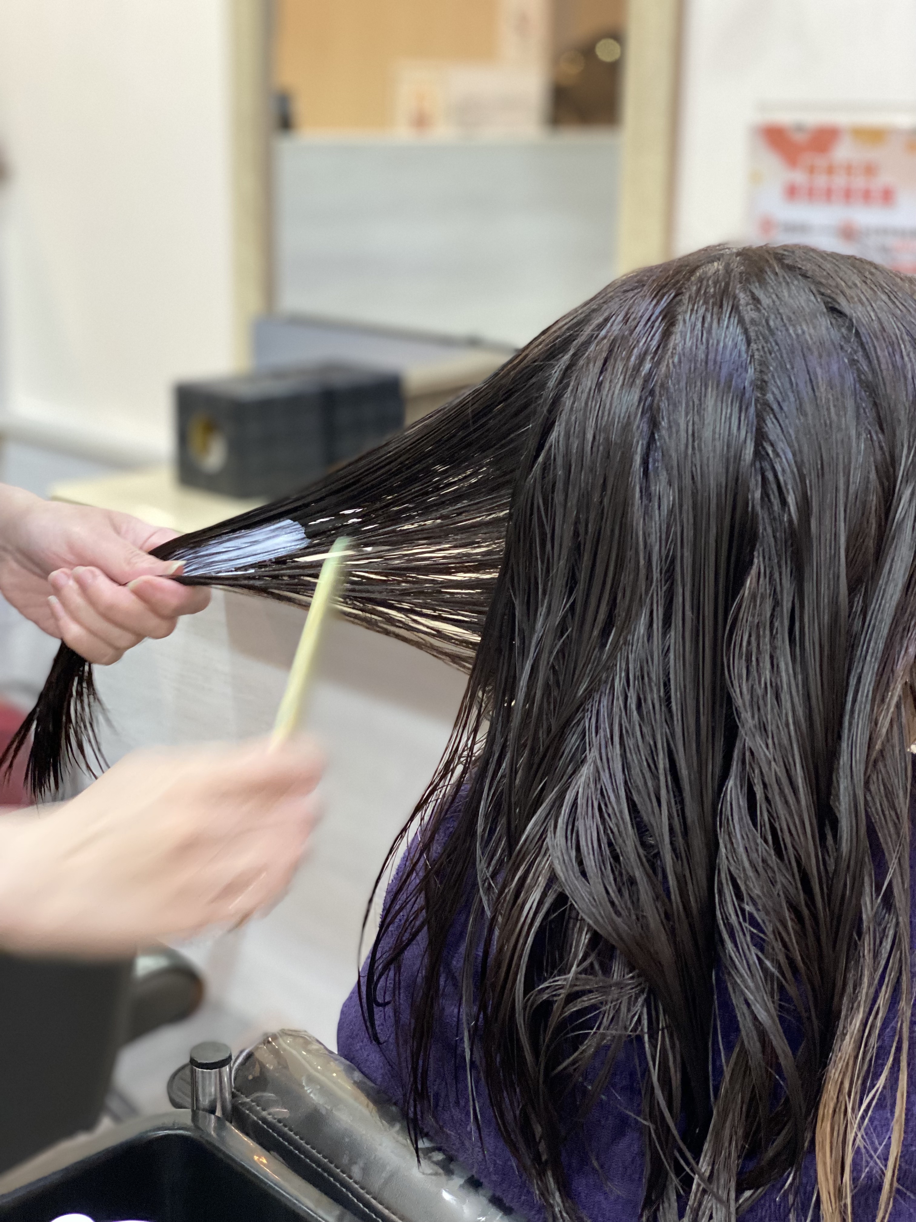 設計師有特別提醒我們,第一道手續結束之後頭髮會呈現澀澀的手感,叫我們不用擔心,下一道完成之後就會完全不一樣了!