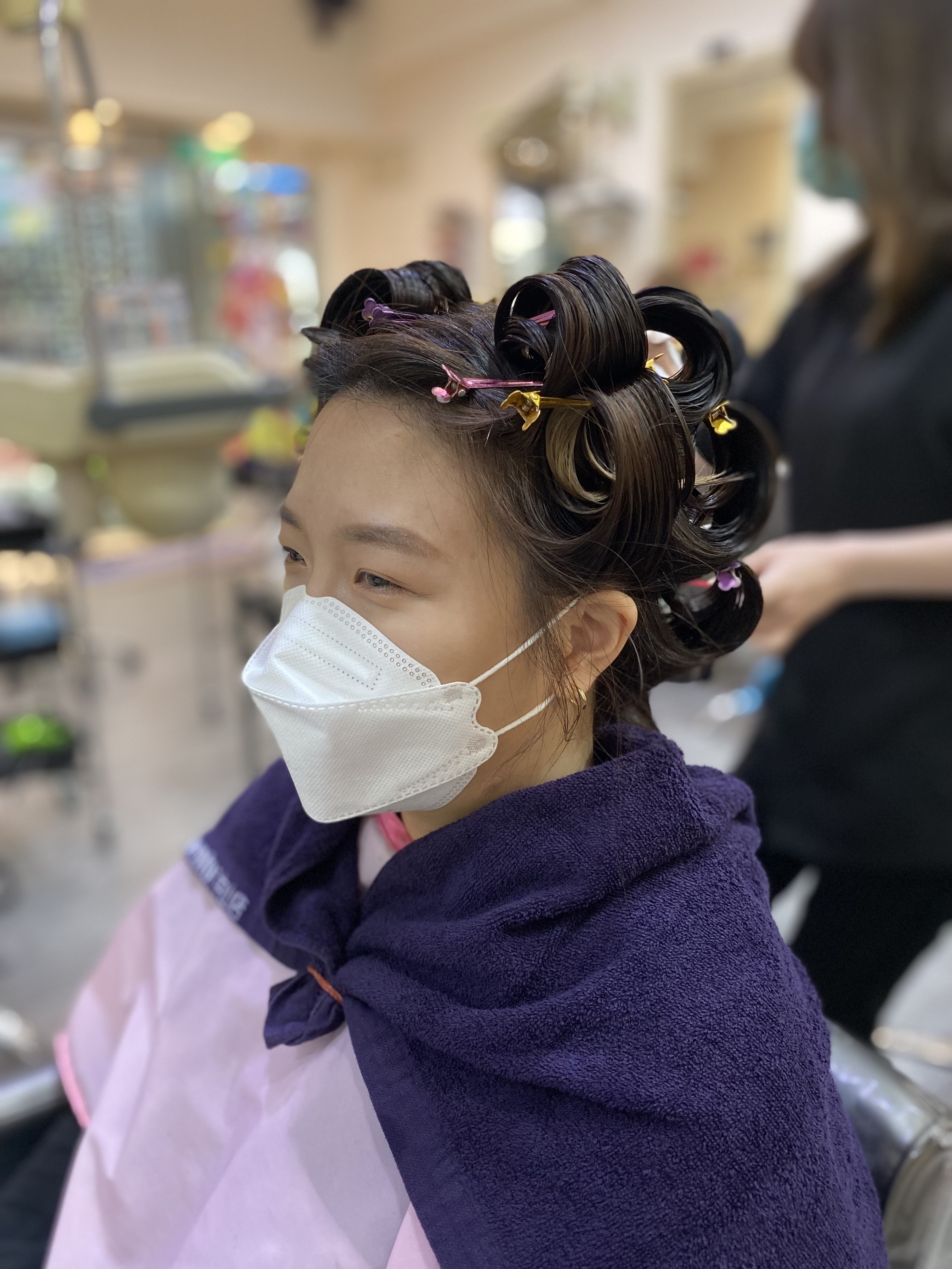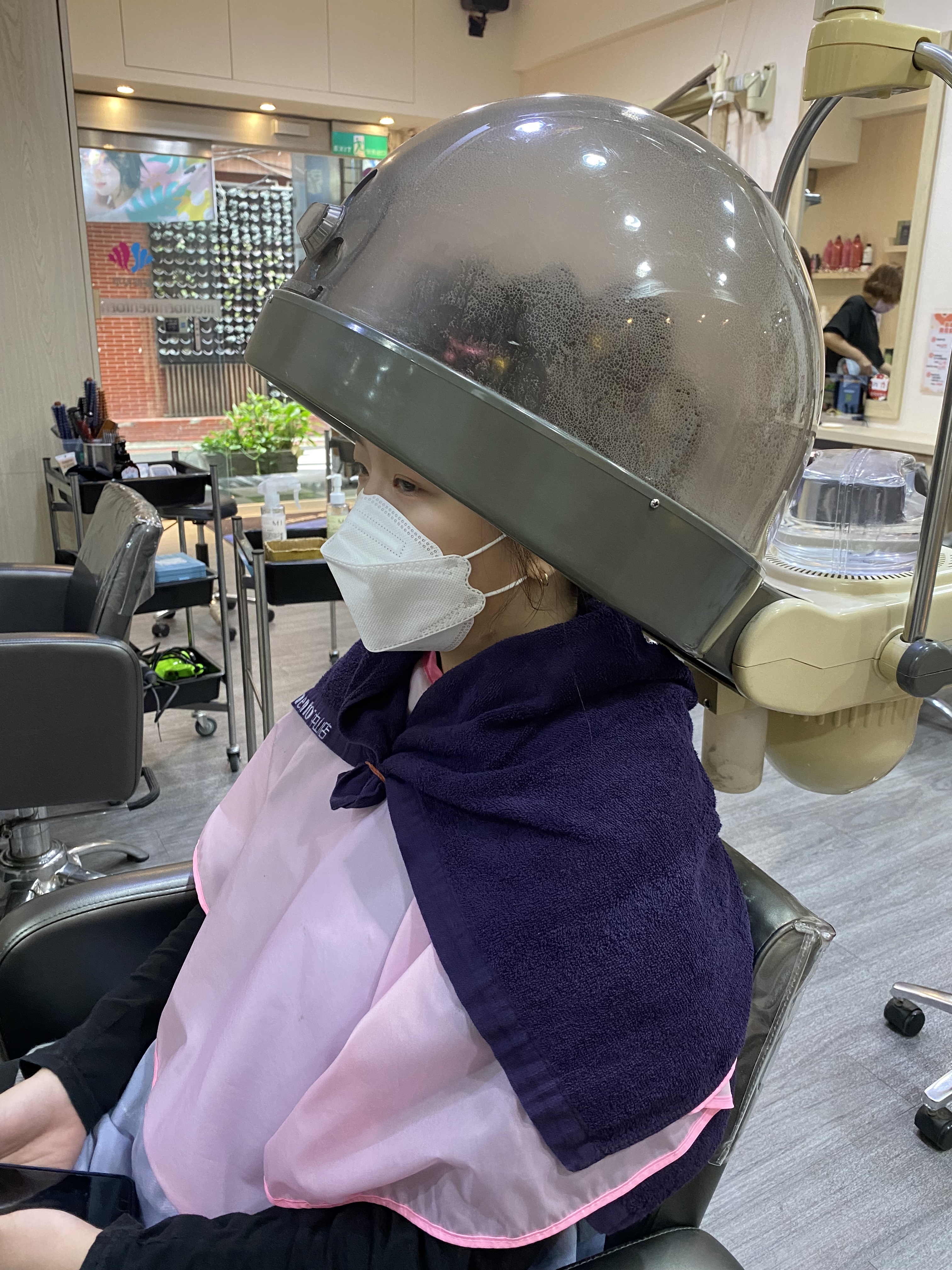 這次比較不一樣的地方是有多了蒸氣,設計師會把頭髮分量分層,LU用完超像包租婆😂😂😂接著會進行差不多20分鐘的蒸氣~