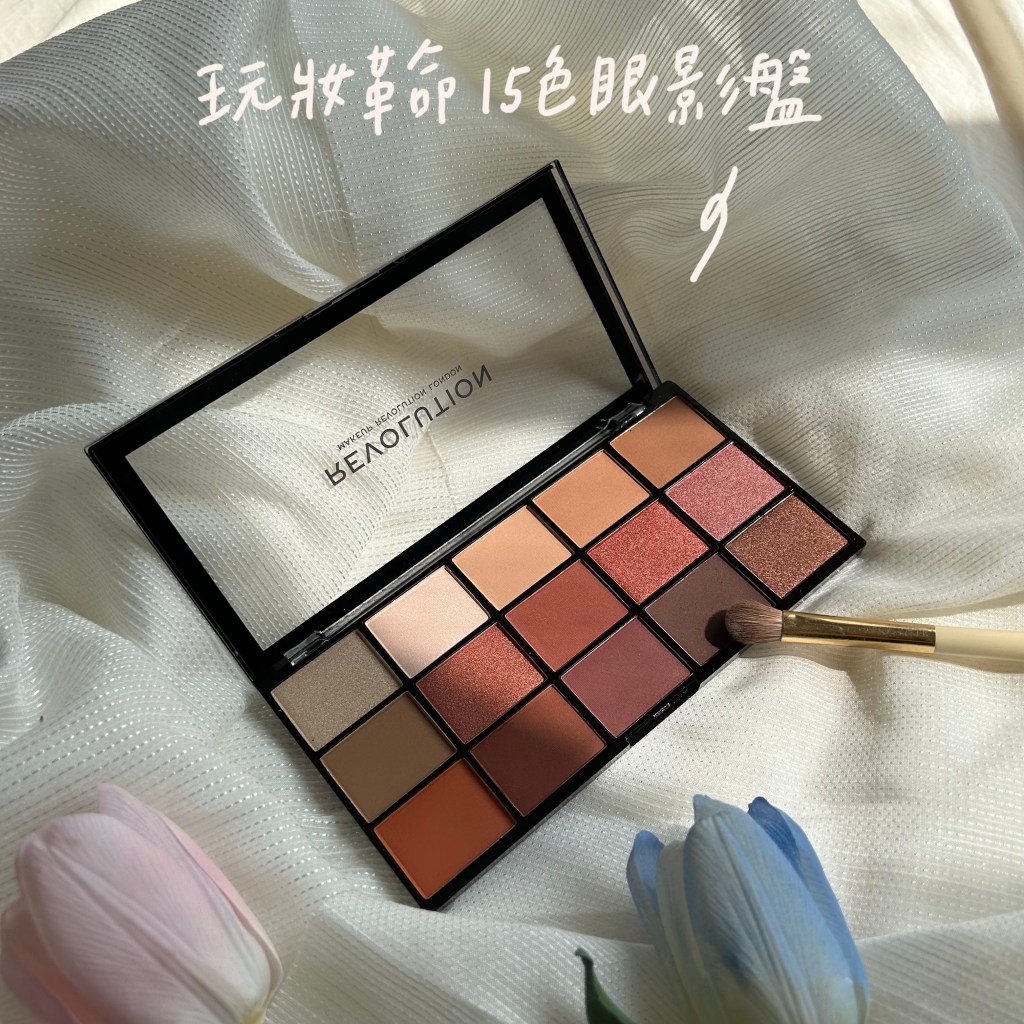 LU編一直很想有一盤像調色盤一樣的眼影,不過礙於實用性一直沒有下手,ˋ這次找到的REVOLUTION的玩妝革命15色眼影盤-比利時可可,不管是霧面還是珠光的沒有一格是敷衍的顏色,好開心啊🥰