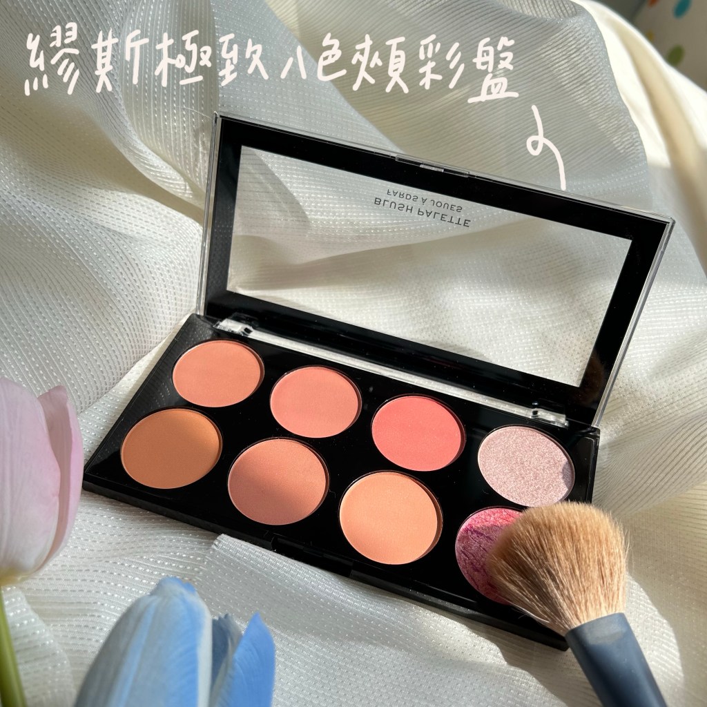 繆思極致八色頰彩盤-蜜糖粉除了粉紫色的霧面腮紅之外裡面還有兩格是珠光腮紅,疊擦在腮紅上可以做打亮使用,算是很經濟實惠的腮紅盤,小資女必收!
