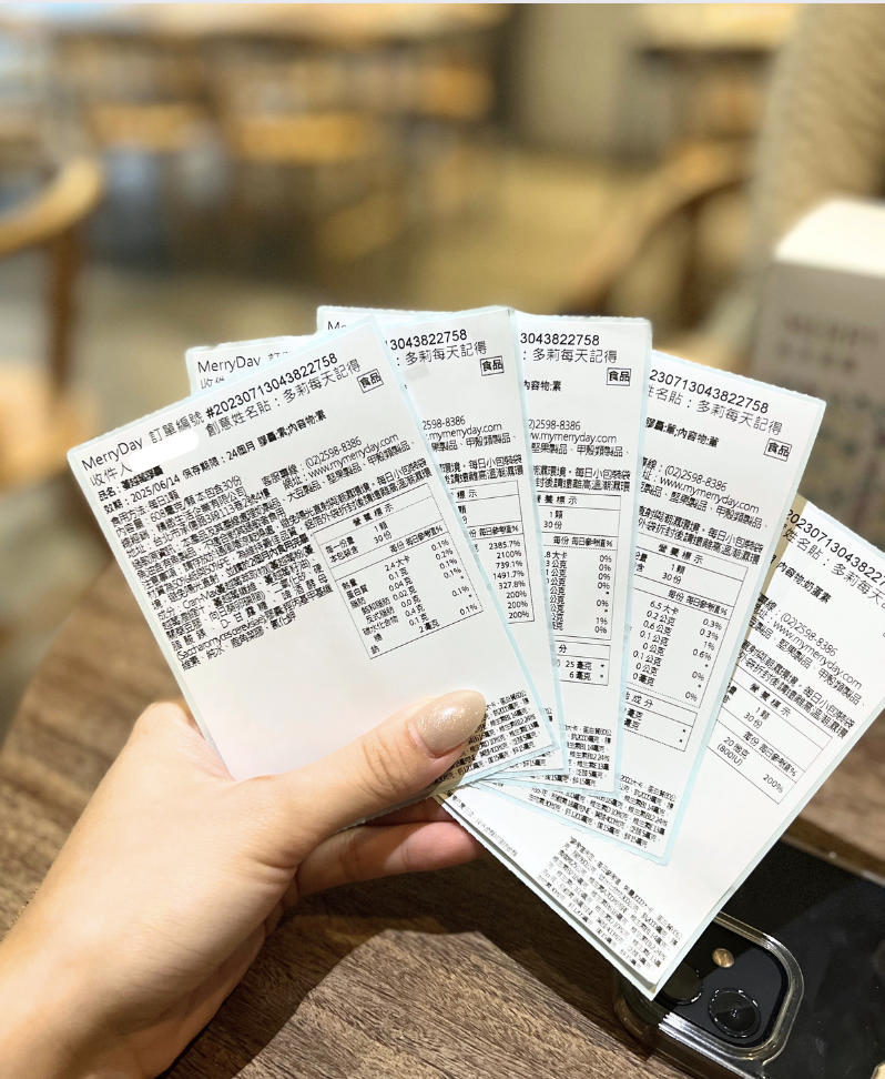 MERRYDAY他們每包上面都印有『內容物、你的個性化名字、有效日期』