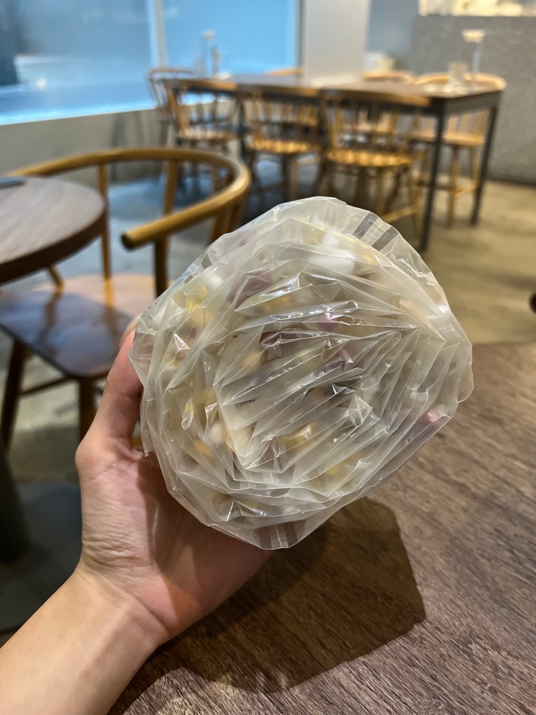 再把一開始那一包要放進去從洞口拉出來~就完成囉!