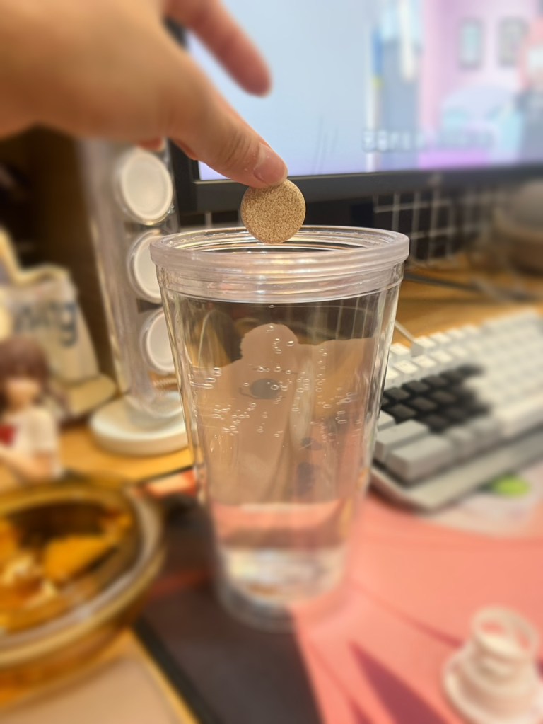 每天餐前 15 分鐘,丟一錠到水裡,看著咕嚕咕嚕冒泡泡,超療癒。