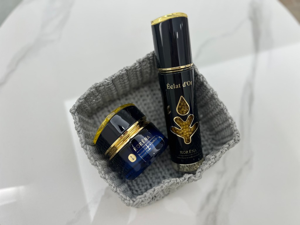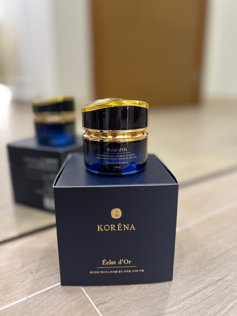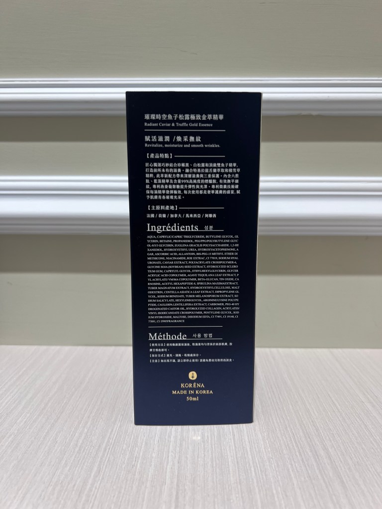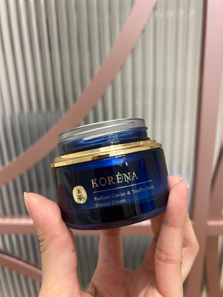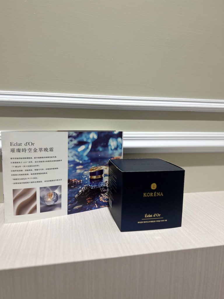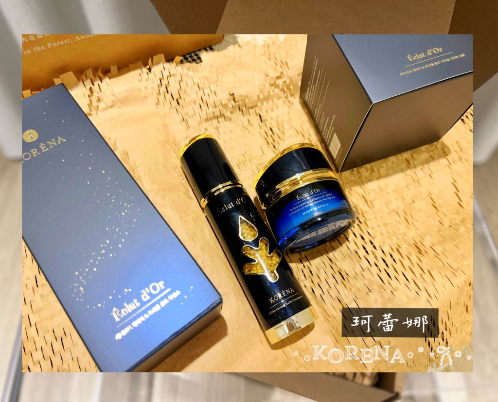 KORENA(珂蕾娜)是來自韓國的保養品牌,主打結合醫美級修護與日常保養的完美平衡。包裝是那種一拿起來就讓人心情很好、閃閃發亮的質感——金色與藍色搭配,低調又奢華。放在梳妝台上就像精品一樣漂亮。