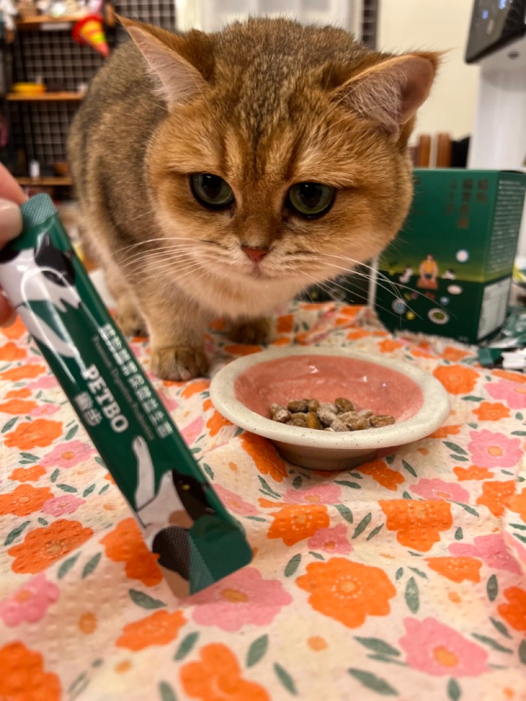 粉末融入後看不太出來有加東西,連平時敏感的牠也吃得自然